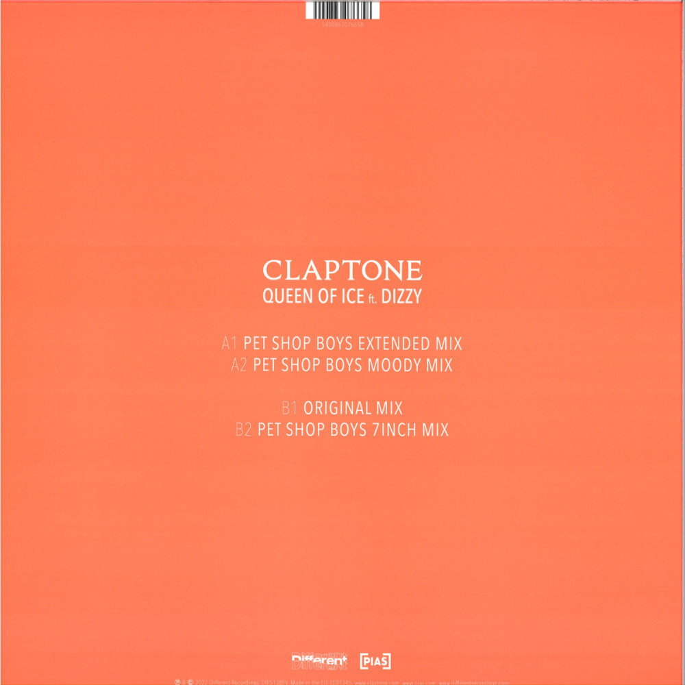 A Claptone Ft. Dizzy – Queen Of Ice (Pet Shop Boys Remixes) egy olyan 12"-es kiadvány, amely a modern house világát köti össze a Pet Shop Boys jól felismerhető, elegáns popérzékenységével. A 2022-es UK megjelenés limitált, icy clear kivitelben jelent meg, és már a tracklista alapján is látszik, hogy ez nem egyszerű egyoldalas remixlemez, hanem egy tudatosan összerakott maxi, ahol az eredeti dal és a különböző Pet Shop Boys-verziók együtt adják a lemez karakterét.