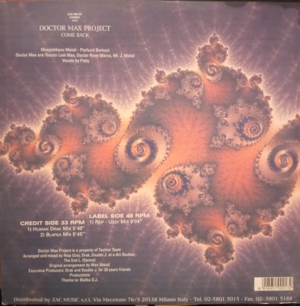 A Doctor Max Project – Come Back 1995-ben jelent meg az olasz ZAC Records gondozásában, és a korszak italodance szcénájának egyik tipikus, ugyanakkor ritkább darabja. A ’90-es évek közepén a hasonló kiadványok uralták a klubokat és diszkókat, így ma már igazi kincs a retro bakelit maxi gyűjtők körében.