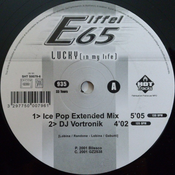 Az Eiffel 65 – Lucky (In My Life) a legendás olasz italodance trió egyik nagy slágere, amely 2001-ben jelent meg a francia Hot Tracks gondozásában. A maxi többféle verzióban kínálja a dalt, így különböző stílusokban élvezhető a korszak tipikus euro house/italodance hangzásvilága.